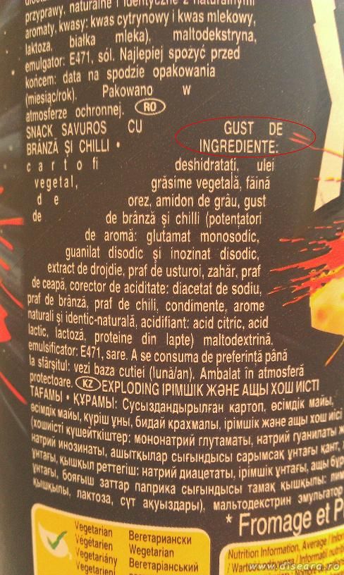 "...gust de brinza, gust de chilli,....praf de usturoi, praf de ceapa,...praf de brinza, praf de chilli..." praf in ochii prostimii ce cumpara!. Bani facuti praf si ramai cu "praful de pe toba".