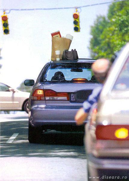 chiar asa, nu inteleg ce e asa comic.. pai lumea cand se duce in concediu si are multe bagaje nu-si pune o parte din ele pe masina? :D