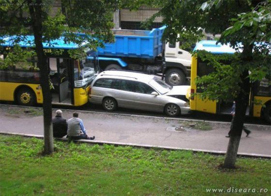 oare aia doi care privesc sunt soferii autobuzelor ? isi admira opera ? :))