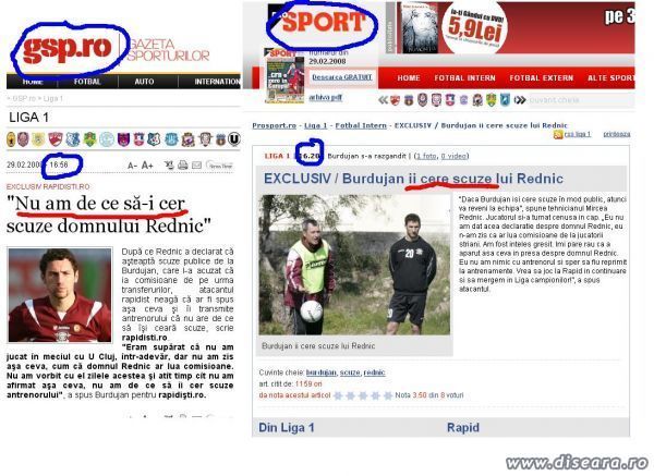 Am citit cele doua articole si diferenta titlurilor este de la cer la pamant , dar in ambele scrie ca Burdujan nu a spus asa ceva plus ca nici in al doilea nu spune ca isi cere scuze fata de domnul Rednic , ci doar ca ii pare rau ca se vorbeste in presa de asa ceva.