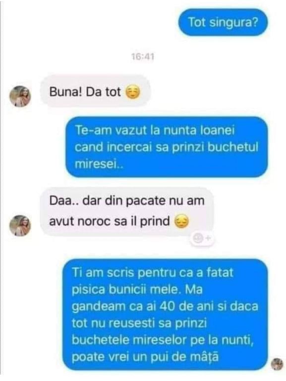 Am zis să-mi iau o grasă, că n-o să mă înșele niciodată. S-a dus cu primul care...