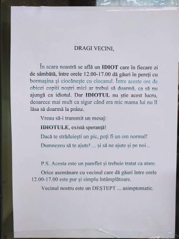 Astăzi, 5 octombrie, este Ziua Internationala a profesorilor. La Mulțe Ani tuturor profesorilor, în special doamnei profesoare de română! ,,Dak nu ierea ia nici azi nu știam să scriu cu 2i ,3i s-au cu cratimă. Mam dus la șkoală și mia plăcut mult toate cărțili. V-ă pup și v-ă mulțumesk! Nu toți știe ce știu io , adica Jan!" |