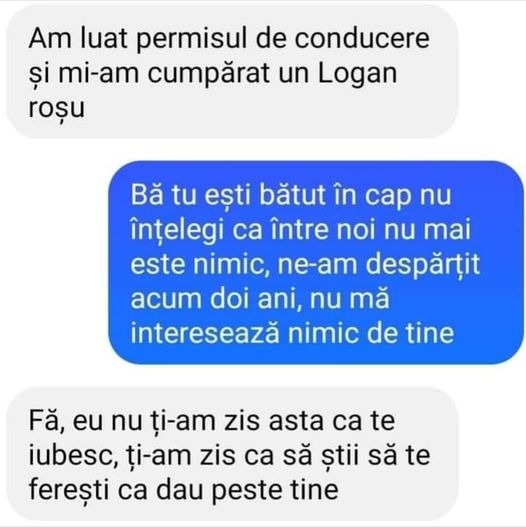 La începutul relației: - Și eu pe tine! La sfârșitul relației: - Și tu pe-a mea! |