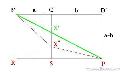 Fiindca cablul de la B' la B trece prin punctul fix P, problema de minim a lungimii cabului de la B' la B se descompune in doua probleme de minim: a lungimii cablului de la B' la P, si a lungimii minime a cablului de la P la B