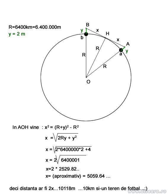 Un om se tot ducea, si se tot ducea...pana nu l-am mai vazut. Da' chiar asa ,considerand pamantul o sfera cu raza constanta(sa zicem raza medie, pt calcule sa luam 6400 km sa fie mai usor ) in conditii meteorologice perfecte( fara fenomene de refractie si alte cele ) ce mai ...geometrice...doi oameni de inaltime, sa zicem 2m, sa iasa calculele mai repede...