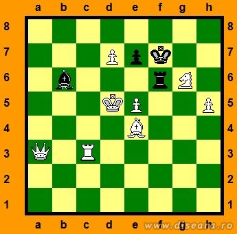 1. Qxe7+ Kg8 2. exf6 Ba5 3. Qg7# 2. ... Bd4 3. Rc8# (Qg7#, d8Q#, d8R#)