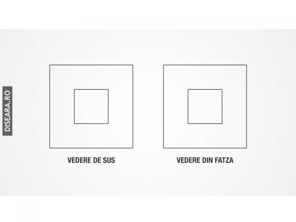 În imaginea atașată sunt vederile de sus și respectiv cea din față a unui obiect (evident tridimensional) din material opac.