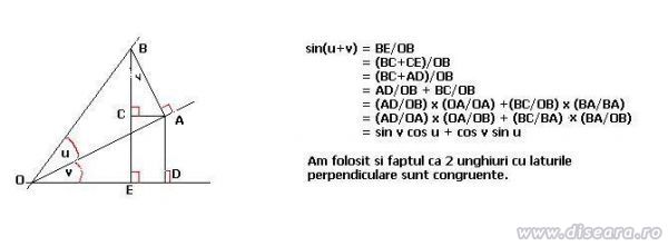 Folosind desenul alaturat se poate calcula sin ( u + v ) in functie de sinusul si cosinusul unghiurilor u si v ? Unghiurile marcate cu rosu sunt drepte.
