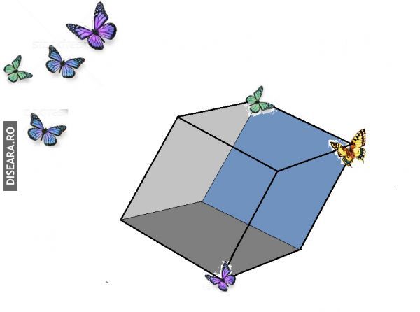 Trei fluturi în zbor se așează pe trei colțuri distincte ale unui cub. Care e probabilitatea ca triunghiul, în vârfurile căruia s-au așezat fluturii, să fie triunghi dreptunghic ? |