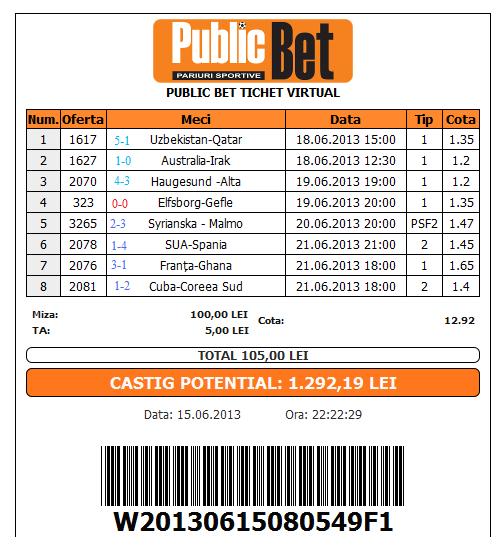 Doresc ca acest topic sa fie un spatiu in care sa discutam intr-o atmosfera destinsa despre tot ceea ce inseamna lumea pariurilor. Si aici ma refer la opiniile voastre despre pariuri sportive (si nu numai), povestile voastre despre cum ati inceput sa pariati, ce castiguri ati avut si ce recomandati si altora sa faca pentru a castiga. Nu in ultimul rand mi-as dori ca atunci cand pariati sa treceti si pe aici, sa lasati o urma: sa ne spuneti daca ati castigat, sau ati pierdut, pe cine ati jucat si pe ce anume ati mizat. Daca nu sunteti de acord cu acest 'viciu' nu e nevoie sa va pierdeti timpul pe aici:)
