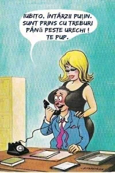 -Ma duc doar pan'la piață Gicuta, să-mi mai iau sutienul?--Ia-ți-l draga mea ca este noroi pe jos. |