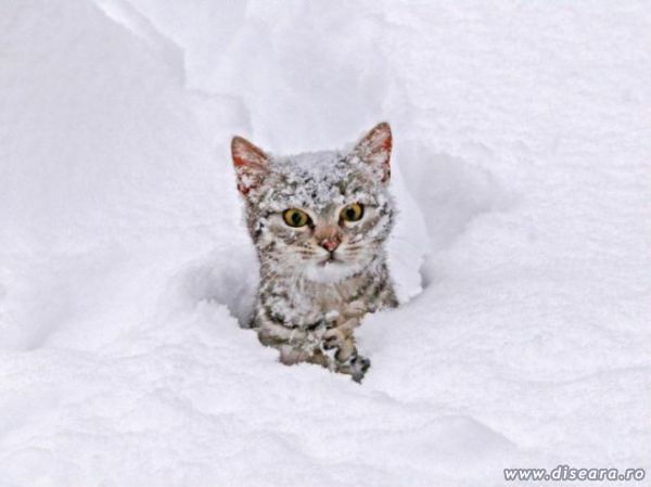 E simpatica foc pisicuta! Nu vedeti ca e bulversata ca nu mai gasreste iesirea?! E prea mare zapaza pentru ea! :) A tot mers pana a scos capul deasupra.. Cred ca si-a mai croit drum dupa care o mai fi ridicat capul din nou sa vada:) E simpatica foc!