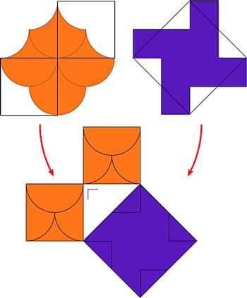 Demonstrati ca figurile din imagine au arii egale . (discutie libera . "albastru" pentru cea mai simpla demonstratie empirica i.e. fara calcule :D)