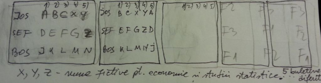 -pentru prima functie candideaza trei persoane (A, B, C) si se tiparesc 3! = 6 buletine de vot distincte.