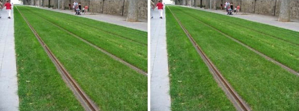 Priviti cele doua imagini puse una langa alta. Prin ce difera liniile de tramvai din cele doua imagini ? |