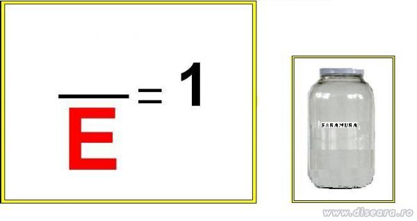 Un mic exemplu edificator este cel al interpretarii imaginii din dreapta , care a utilizat sensul omonimic al cuvantului "sare" . Rezultatul interpretarii acestei imagini este "SARE ÎN APA", (aceasta fiind cauza pentru care pe recipient scrie 'saramura') . Ceea ce a rezultat este o expresie utilizata frecvent la natatie . (In exemplu nu a fost cazul exploatarii unui cuvant cu diacritice). |