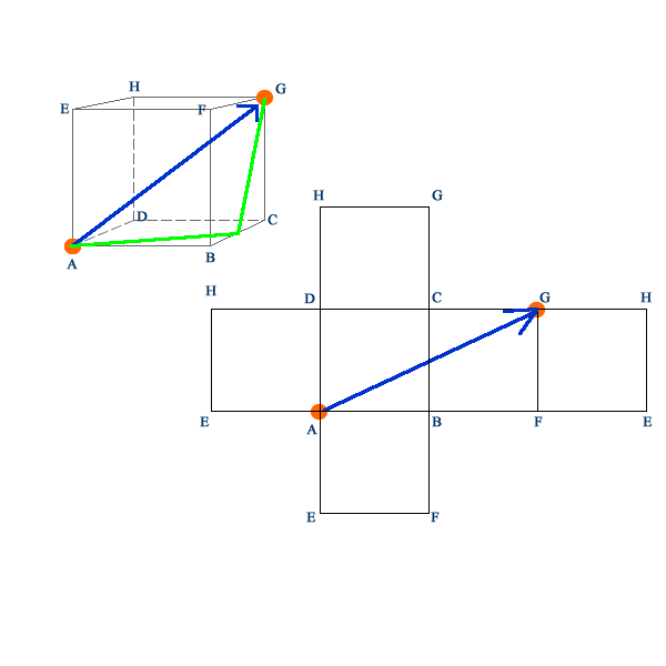 Pentru a ajunge in coltul cel mai departat urmand drumul cel mai scurt, insecta trebuie sa ajunga in mijlocul laturii aflate in fata ei, dupa care sa urce drept pana in coltul cu pricina.